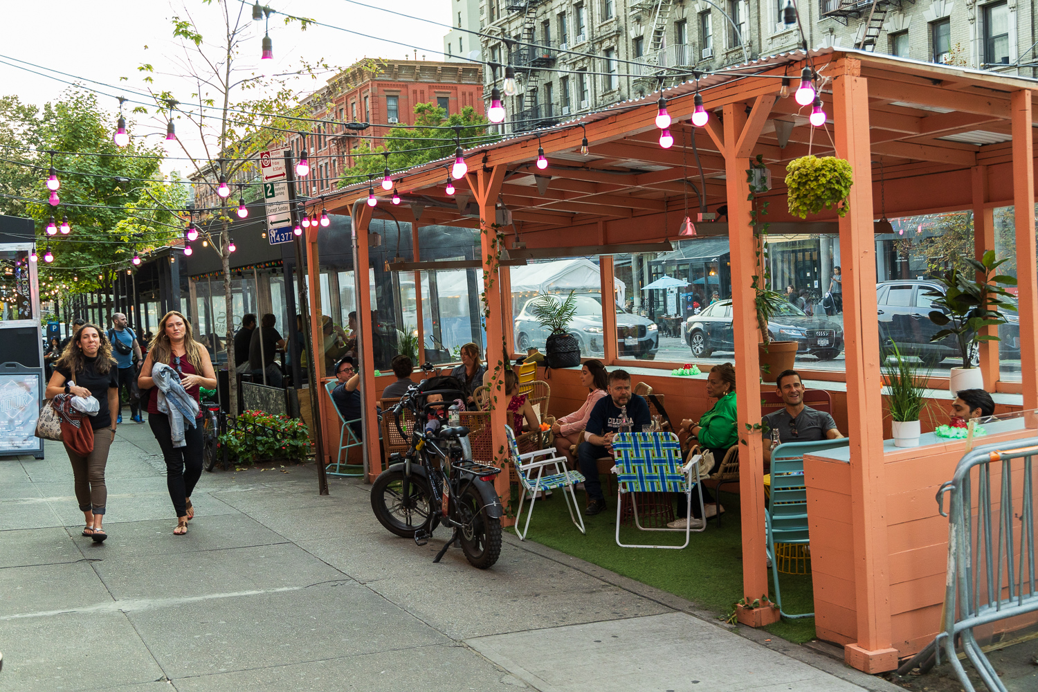 As someone frequently navigating the UWS with a stroller, I’m sympathetic to wanting wider sidewalks – but the sheds are in the street, they aren’t blocking sidewalk space. City revenue wise, meter parking is like $3.50/hr and I’ve easily seen 8-10 people eating in a shed that was previously one parking space, dining is far and away higher revenue for the city.