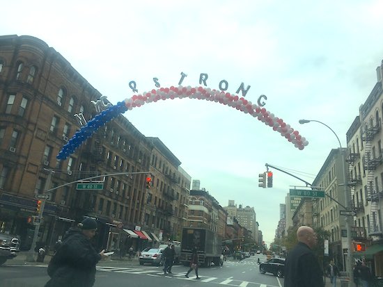 Balloon Kings at 207 West 80th Street created a balloon array above Amsterdam Avenue at 80th Street to celebrate New York in the wake of Wednesday’s terrorist attack along the West Side Highway.