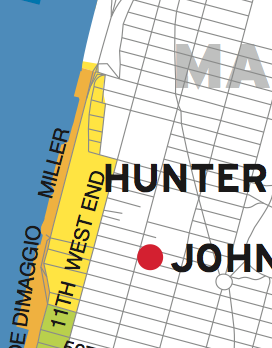 To the left is a blowup of the evacuation zone, with Zone A depicted in orange, and Zone B depicted in yellow. Here’s the link to the complete NYC map.
