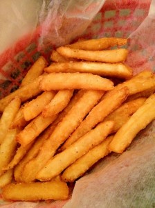 I had the People’s Choice burger, served medium-rare on a sesame bun with swiss, mozzarella and sauteed onions (as well as the tomato, raw onion and pickles that come with all the burgers). The meat was actually medium-rare, not medium or medium-well, which I take for granted less than I should be able to. Island Burgers sources their meat locally and its quality is obvious, but the mushrooms were vaguely bland and supermarket-y and the onions weren’t nearly as caramelized as I’d hoped. The sesame bun didn’t hold up to the burger juices, and ketchup was definitely required to liven up the proceedings.