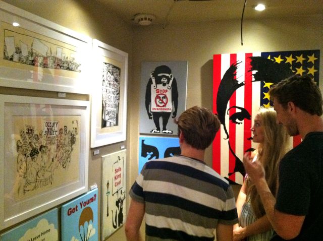 Thomas was one of seven artists who showed their work on Sunday night at 78 Below, the music-friendly bar on Columbus and 78th. The show was organized by Dr. Steven Swancoat, an Upper West Sider. That’s him with Enrico in the picture below, along with another shot from the show below that. Swancoat told us the art show was a success and helped benefit the Ovarian Cancer Research Fund: