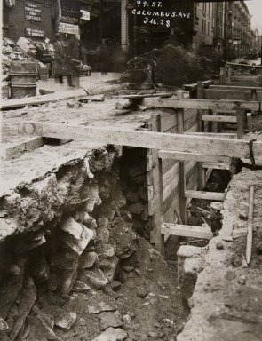 Looking West from Columbus Avenue at 99th Street as the sewer is constructed in 1928. Larger image here.