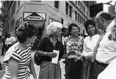 Ed Koch talks with Upper West Siders on 105th Street in 1983. Want to see his shiny head in larger form? Click here.