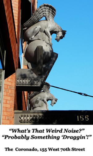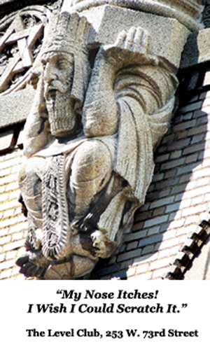 And so we present a by-no-means comprehensive survey of some of the more interesting carvings gracing what might be called ‘Lincoln Square North’ – that area between 70th and 79th Streets, from Central Park West to West End Avenue. Because that is so full of great examples, we have limited ourselves, for now, to just these notable, named, buildings:
