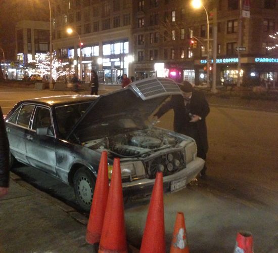 A man stopped his Mercedes-Benz in front of Fairway on Sunday night and popped the hood. That’s when the engine apparently exploded and flames shot up about two feet in the air, said Sachin, who was standing across the street when it happened and took the pictures below.