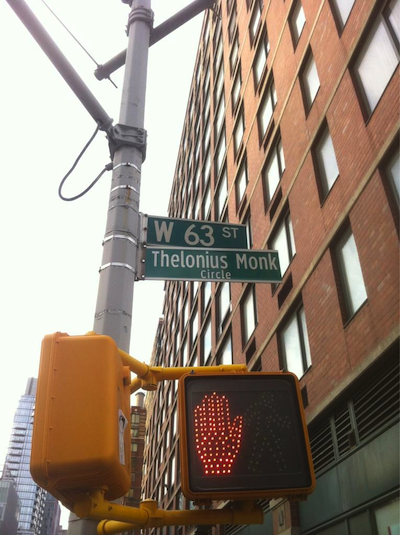 The city honored Monk, who died in 1982, by naming the cul-de-sac on the block where he lived “Thelonious Sphere Monk Circle.” But they left one thing out of the tribute: an O. As you can see in the photo above, the sign spells Thelonious as “Thelonius.”