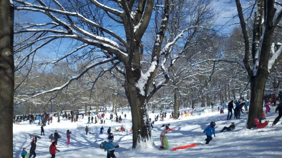 Sledding at 103rd and Riverside Park. By Meg D’Incecco.