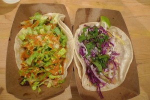 Each taco arrived nestled in between two soft shells. My favorite taco hands down was the Korean BBQ; a taco filled with Bulgogi beef, mango slaw, kimchee, and BBQ sauce. The taco was sweet and spicy—a wonderful “daily special” taco I hope becomes a regular on the menu.