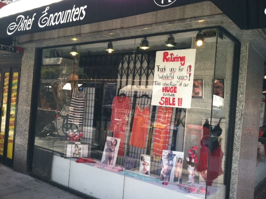 Brief Encounters, a lingerie store on the corner of 71st and Columbus, is closing after 18 years with a going-out-of-business sale. A sign on the window says “Retiring. Thank You for 18 Wonderful Years!”