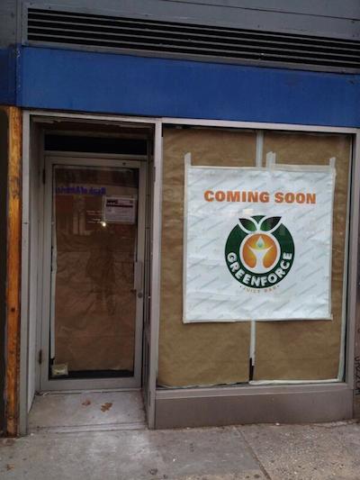 GreenForce: A new juice bar is opening on Broadway between 81st and 82nd streets. It’s expected to open in the spring, according to its website. Thanks to Jillian for the tip and Greg for the photo.