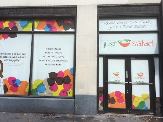 Just Salad will be opening in the former home of yogurt shop Yapple on Broadway between 70th and 71st. Just Salad is part of a chain with locations in New York, New Jersey, the United Arab Emirates and Hong Kong. The name, by the way, is a LIE! They also sell smoothies, wraps and soups. We’ll be sure to write a full expose when we get around to it. Thanks to Jason, Andrew and Diana for the tips.