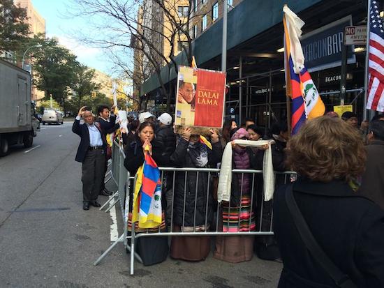 Protesters on Broadway between 74th and 75th chanted “False Dalai Lama. Stop Lying!”