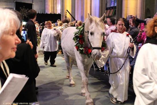 A horse walks through the Cathedral of St. John the Divine during its annual Blessing of the Animals Sunday. Photo by spiritbear.