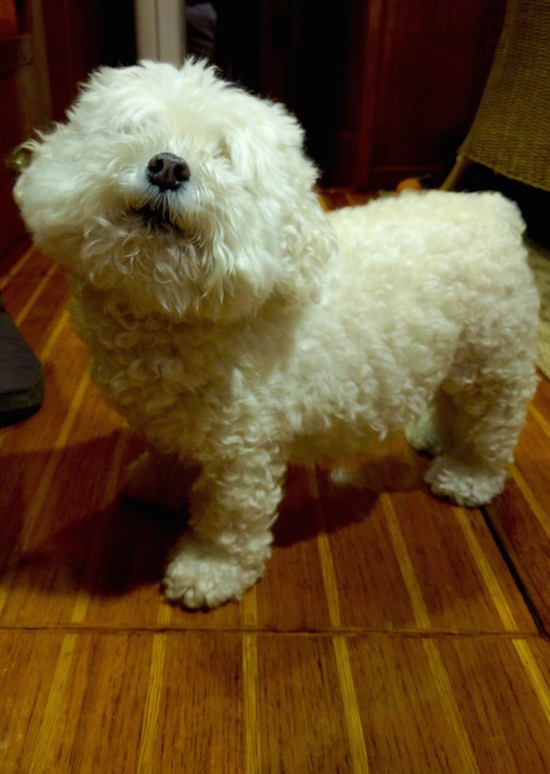 It’s a cozy 70 degrees, however, inside the living quarters he calls, “a very efficient studio with three bedrooms and two bathrooms in about 450 square feet…our womb with a view.” All of the couple’s worldly possessions are tucked away with the tidiness of a black-belt Marie Kondo-ite. Ollie, a 10-year-old Maltipoo otherwise known as The Admiral, supervises operations from a newly upholstered settee/dining-bench/guest bed.