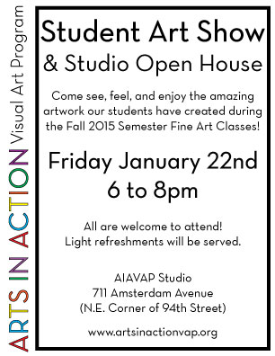 The talented young artists of the Arts in Action program will be showcasing their work on Friday night at 711 Amsterdam Avenue (94th street), and everyone’s invited.