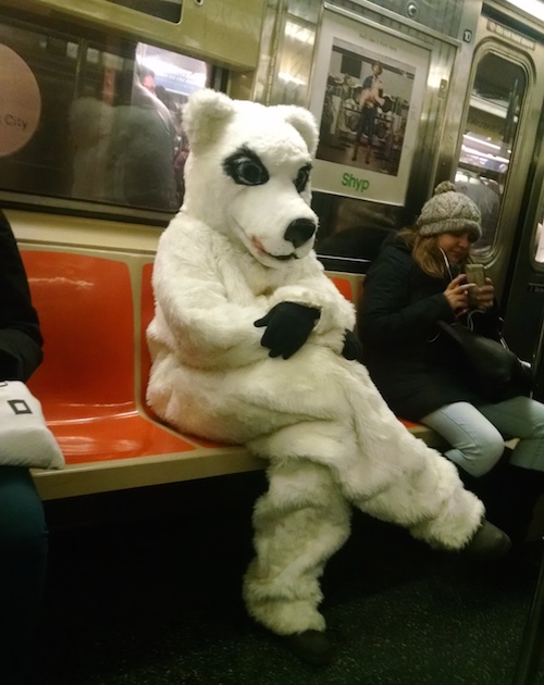Feeling furry on the Southbound 1 train at Columbus Circle. Photo by Jordan Cooper taken at noon on Friday.