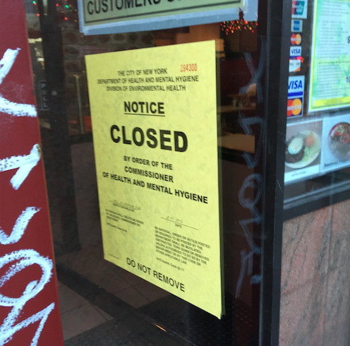 It takes a lot of chutzpah to put up that sign with the intent to deceive customers after the Health Department slapped them with a shutdown notice.