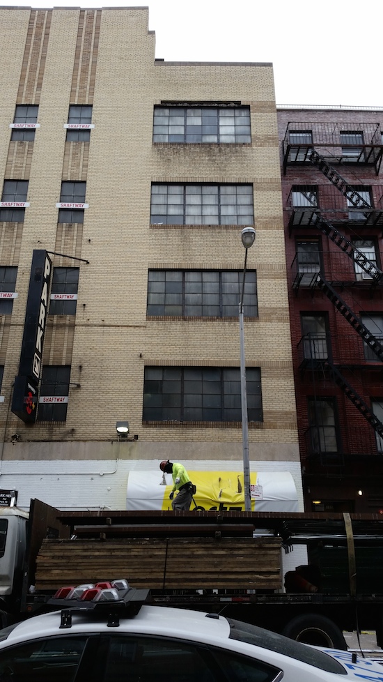 The FDNY requested a structural stability inspection after the bricks fell; no one was reported injured, they said. Meredith Kurz, who took the photos above and below, said the bricks appeared to have fallen from the 5th floor.