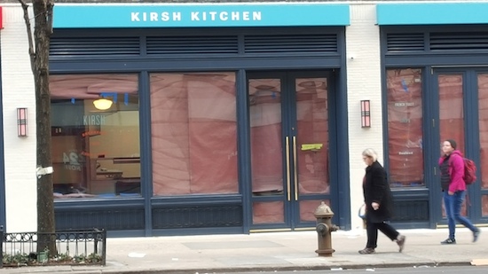The signs are up at Kirsh, the 24-hour restaurant and bakery opening in the former Popover’s spot on Amsterdam between 86th and 87th. Owner Dan Kirsh says they’re just waiting for a gas hookup and will be ready to open soon; last we talked to him he was hoping to open by the end of this month, but it looks now like it will be about two weeks. He posted on Instagram on Tuesday that the bakery is ready. Thanks to Rachel for the photo above.