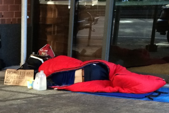 A homeless person sleeping in the West 60’s on Broadway last fall.