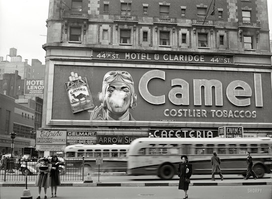 “Camel cigarette advertisement at Times Square.” Photograph from 1943 by John Vachon for the Office of War Information.