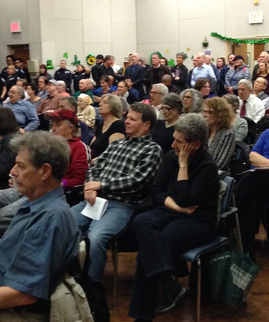 At the meeting’s conclusion,a sense of the meeting was called by the chair, Mr Asche. Since it may not be recorded in minutes, i’m adding this addendum to your excellent article: in favor of this project as presented,I counted 4 or 5;OPPOSED were in excess of 100 hands raised.