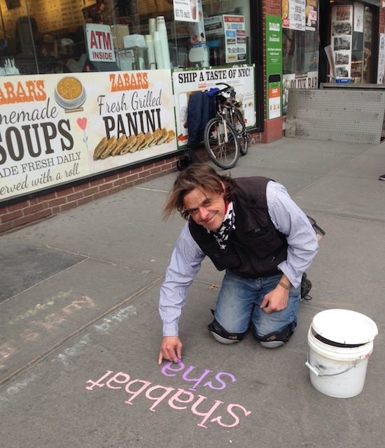 Street artist Hons Honschar was back in action on Friday in front of Zabar’s spreading a little Shabbat love.