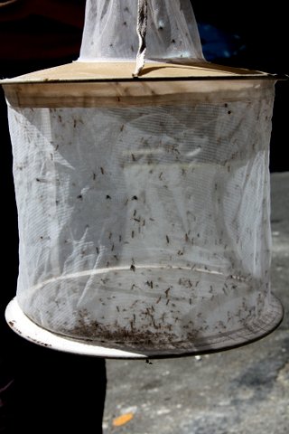 A trap placed near the problematic fire hydrant drew an army of mosquitoes a few years ago. Photo courtesy of block residents known as “the Mosquito Squad”.
