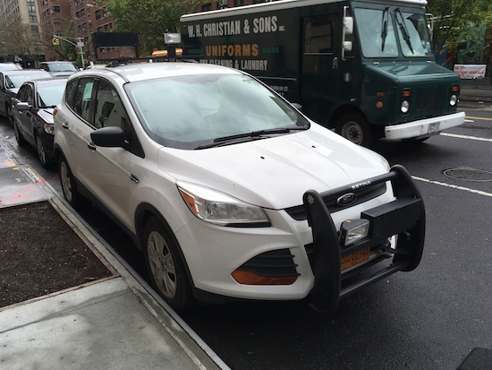 Ernie Fritz spotted the speed-camera car above at 96th street and West End Avenue outside of PS 75 last week. The city operates about 140 cameras to monitor the areas around schools. About 100 of them are mounted at fixed locations, including above traffic signals, and the rest are mounted on city-owned cars that park near schools and change locations periodically.