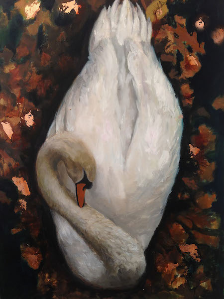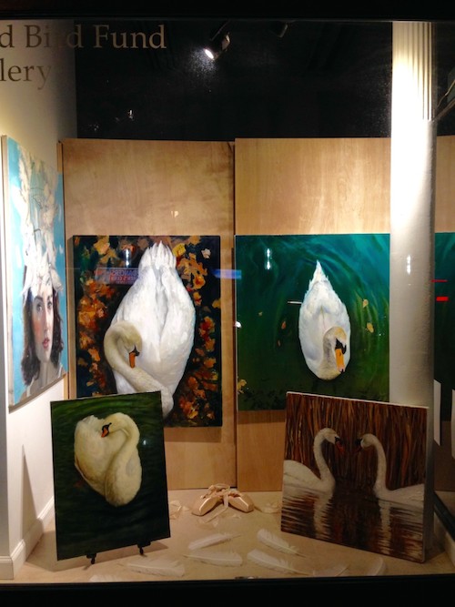“The paintings were inspired by my recent volunteer work at the Wild Bird Fund where I took care of a sick swan there named Vanessa. The paintings developed as an emotional response I had to the recent plan of the Department of Environmental Conservations plan to eradicate virtually all 2,200 of New York state’s mute swans.”