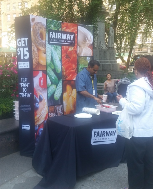 Fairway, beset in recent weeks by a bankruptcy filing and worries about its long-term financial health, took advantage of the hot weather on Thursday to scoop some watermelon balls and hand them out in Verdi Square at 72nd street and Broadway.