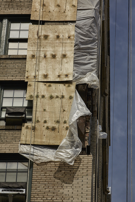 Photo of the section of the building that is undergoing repair work by Jake Sigal.