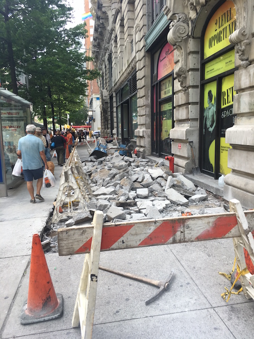 This week, workers began breaking up the sidewalk in front of the old Loehmann’s store. Photo by Berkely.