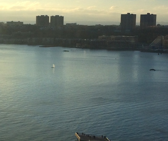 A humpback whale has been hanging out in the Hudson River for the past few days, and a reader spotted it passing by the Upper West Side on Saturday.