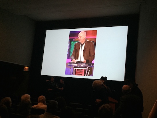 Toby Talbot gallantly led off a series of live and taped tributes to her husband, who died on December 22nd, two weeks after landlord Howard Milstein informed them that, after 37 years, he would not be renewing their lease. The speakers began with Bernardo Bertolucci and ended with Michael Moore — who chose the bang not whimper route.