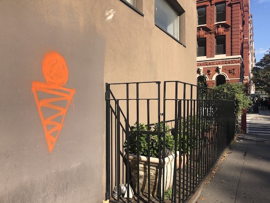 Someone has been spray-painting a ice-cream-looking shape on buildings throughout Columbus Avenue in recent days. What’s the deal? Is it Old Man Winter, Mr. Softee or Cookie Puss?