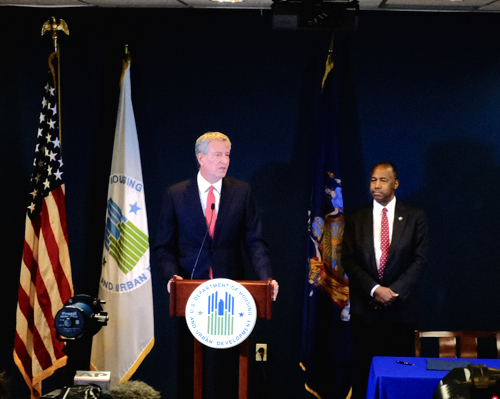 That was the final word at a press conference on the 35th floor of the Jacob K. Javits Federal Building on Thursday afternoon, at which the Mayor and U.S. Housing and Urban Development (HUD) Secretary Ben Carson announced a deal avoiding a federal takeover of NYCHA.