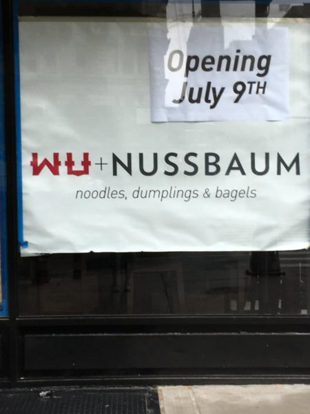 Wu & Nussbaum, the replacement for Nussbaum & Wu on Broadway and 113th Street, now has an opening date. July 9! We wrote about the new and old business here. Thanks to Helene for the photo.