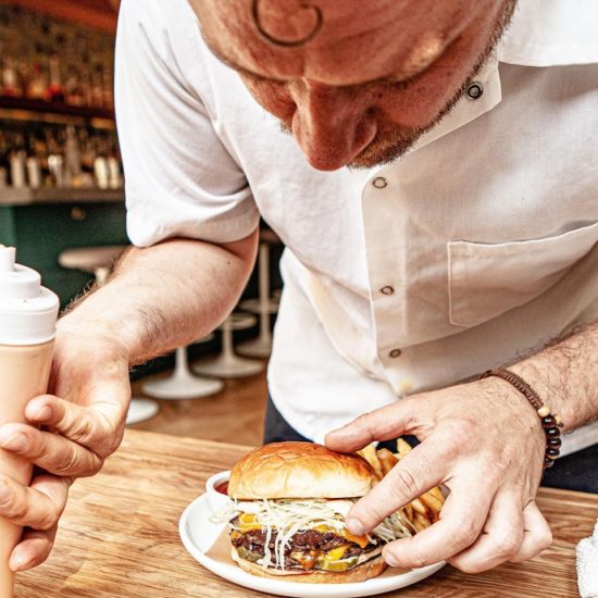 Chef Nick Pfannerstill works on a burger at Nobody Told Me. Photo via Facebook.