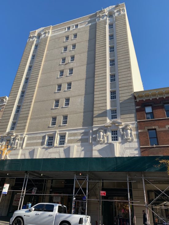 The owners of 475 Amsterdam Avenue filed a Façade Inspection Safety Program (FISP) report in 2013 which indicated that the façade was in an unsafe condition…A subsequent FISP report was filed in 2017, which also indicated that the façade was unsafe…A DOB permit to start repairs on the façade was first issued to 475 Amsterdam Avenue on 7/21/14, and was closed out by the contractor on 2/4/16. The owner hired a different contractor, and pulled new permits for the façade repair work on 4/20/18, and this was most recently renewed on 3/12/19. This permit is still active.