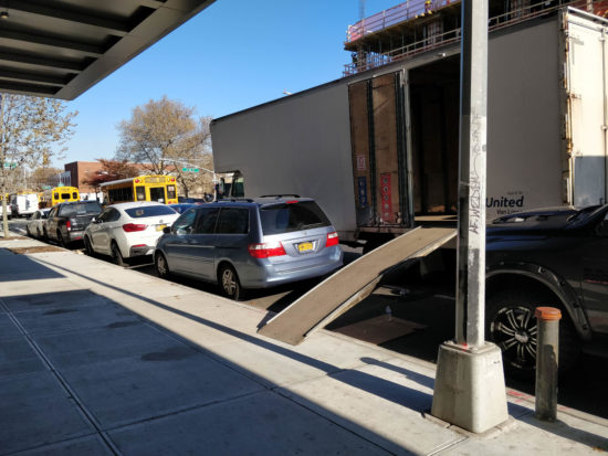 Moving trucks are unloaded in front of the new Salvation Army residence in East Harlem.