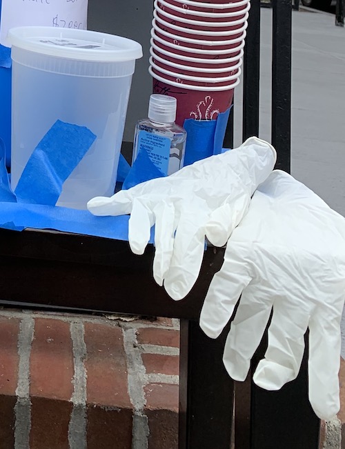 And there were quite a few sanitary instruments, including gloves and hand-sanitizer. Either these kids have taken a full course in restaurant management, or they’re aware of the angst surrounding New Yorkers right now.