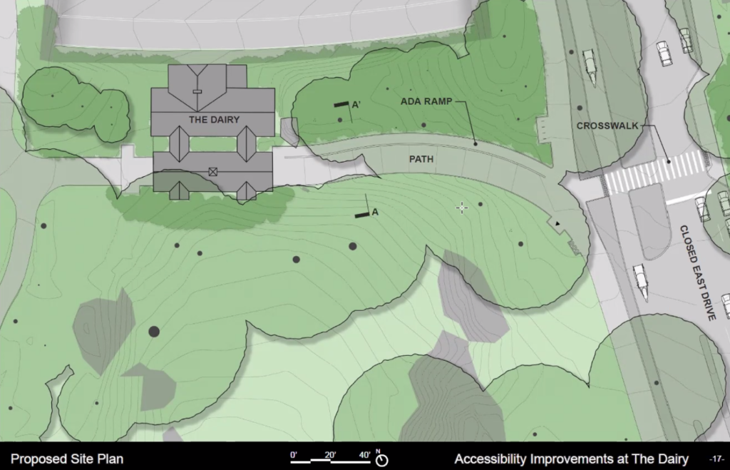 Restoration of the Dairy’s access path is the second phase of a larger body of work (that’s already been approved) to restore the Dairy facility, Rumsey said. Like the Conservatory Garden, this phase would also involve improving universal accessibility.