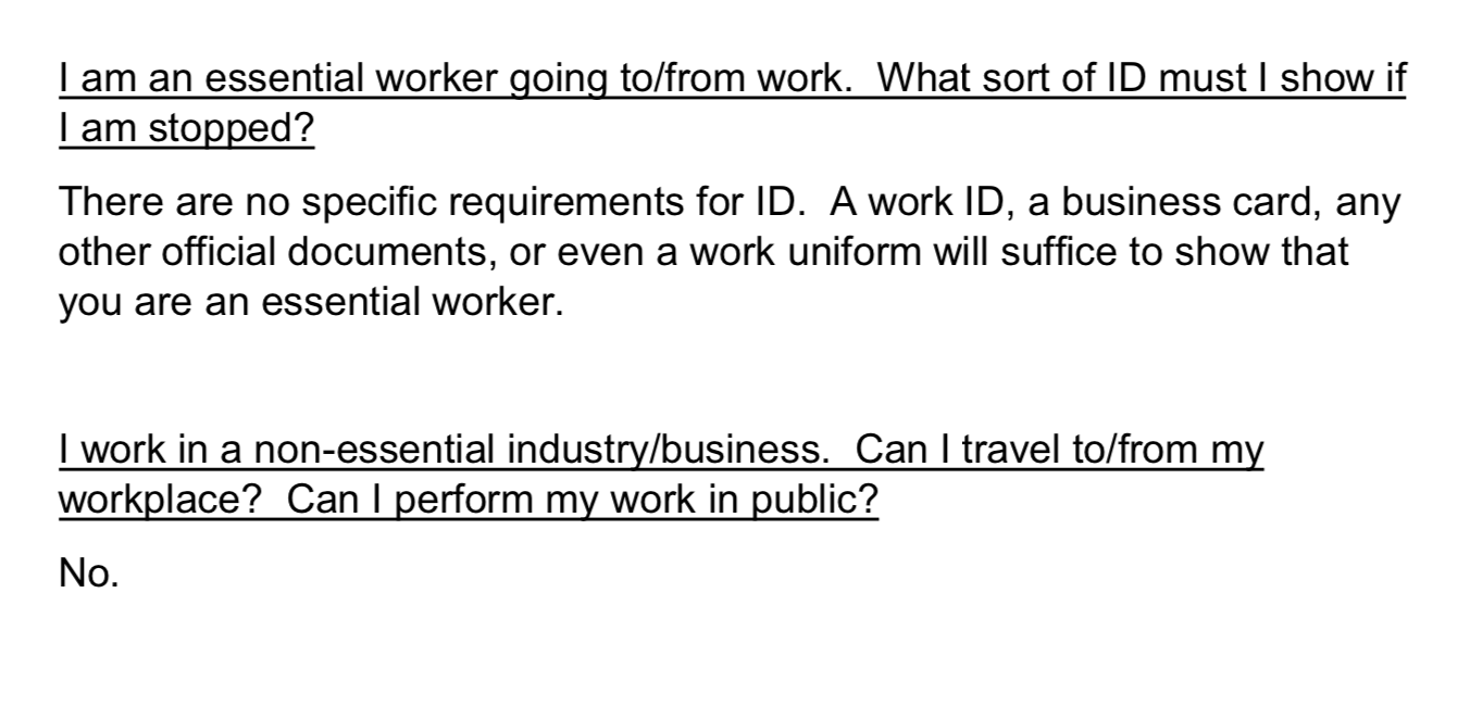 Irony. 24 hour grocery store employees are allowed to go to work and the stores may remain open. But customers are not allowed to leave their homes to go there. Makes no sense.