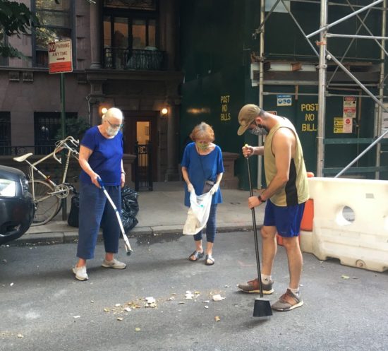 Debby Brown along with neighbor Margery Cohen took part in the West 69th Street Block Association’s “Sweep-a-long” on Tuesday night.