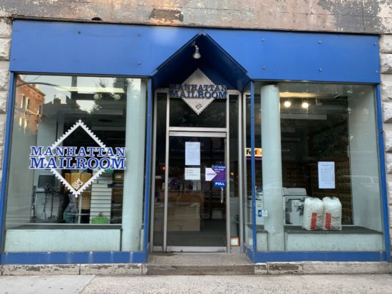 Manhattan Mailroom, which accepted delivery of mail and packages (including dry cleaning) at Columbus and 82nd, closed on September 15. “It has been a pleasure to serve you but present conditions will not allow us to go on,” the business said in a note on the window. Thanks to Kate Hinds for the tip.