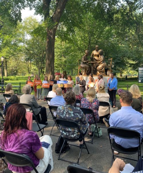 Located mid-park at 68th Street, the monument in Central Park is quickly becoming a gathering place for political rallies and announcements, particularly those focusing on women’s rights.