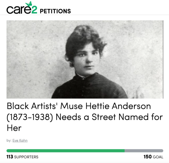 A petition started by Eve Kahn to rename a street for Hettie Anderson. Photo of Anderson in the 1890s is from Norman L. Coe Studio.