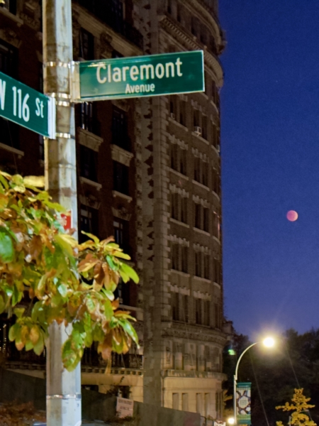 Wilke and Elizabeth See-Tho sent three views of Tuesday morning’s blood moon, which entered the Earth’s shadow at about 3:02am and exited by 6:42am. They took them “from the Hudson by the West 69th Street Transfer Bridge.”