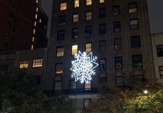 “The rule is that they cannot be in an intersection or attached to any poles that have traffic signals,” explained Nicole Paynter, executive director of the Columbus Avenue Business Improvement District (BID), which arranges for and funds the snowflakes. “That means they have to be mid-block. But most of the blocks on Columbus only have one lamppost mid-block [you need two to string the snowflakes between]. A few blocks have lamposts on both sides, so we will be able to put the large snowflakes hanging over the street on those blocks that fit in the rules.”